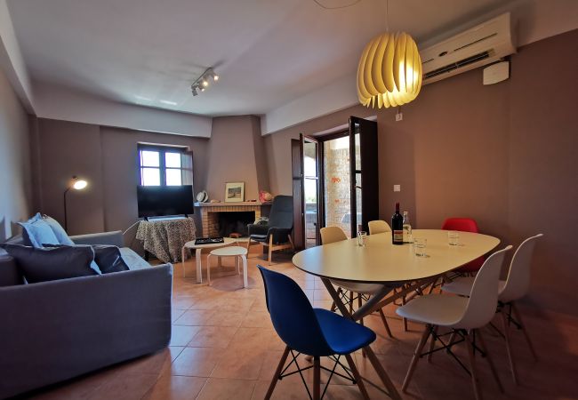 Villa Anaroussa in Pyrgos Diros ist ein wunderschöner steinerner Turm nach den Standards der Region und besteht aus einer 3-Zimmer-Maisonette und einer 2-Zimmer-Wohnung.