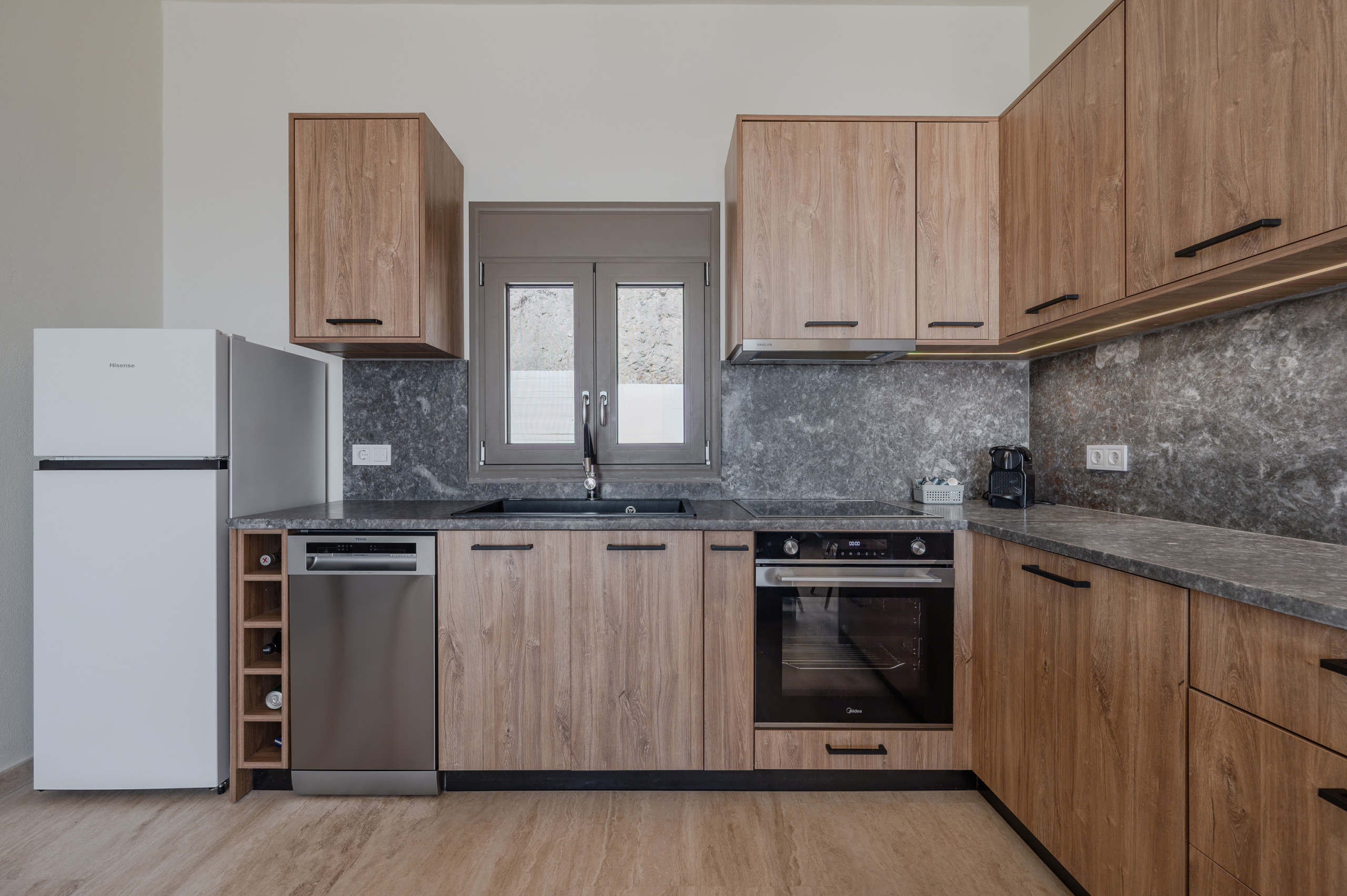 Die Villa nimmt die gesamte obere Etage (zweiter Stock) eines zweistöckigen Gebäudes ein. Das Erdgeschoss bleibt geschlossen und ungenutzt, was vollständige Privatsphäre gewährleistet. Alle Außenbereiche und der Swimmingpool stehen ausschließlich den Gästen von Kedros Villas Exi zur privaten Nutzung zur Verfügung.