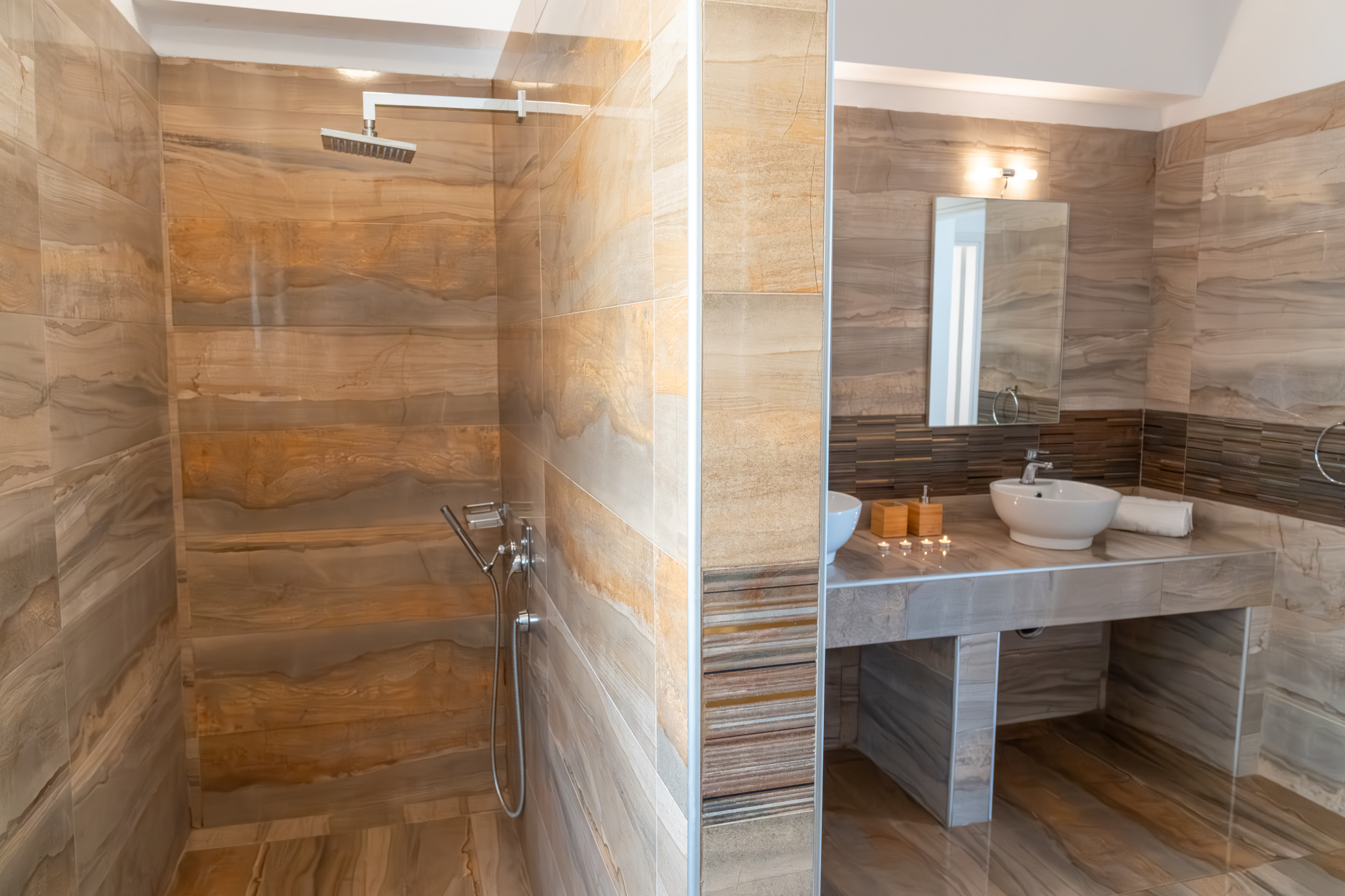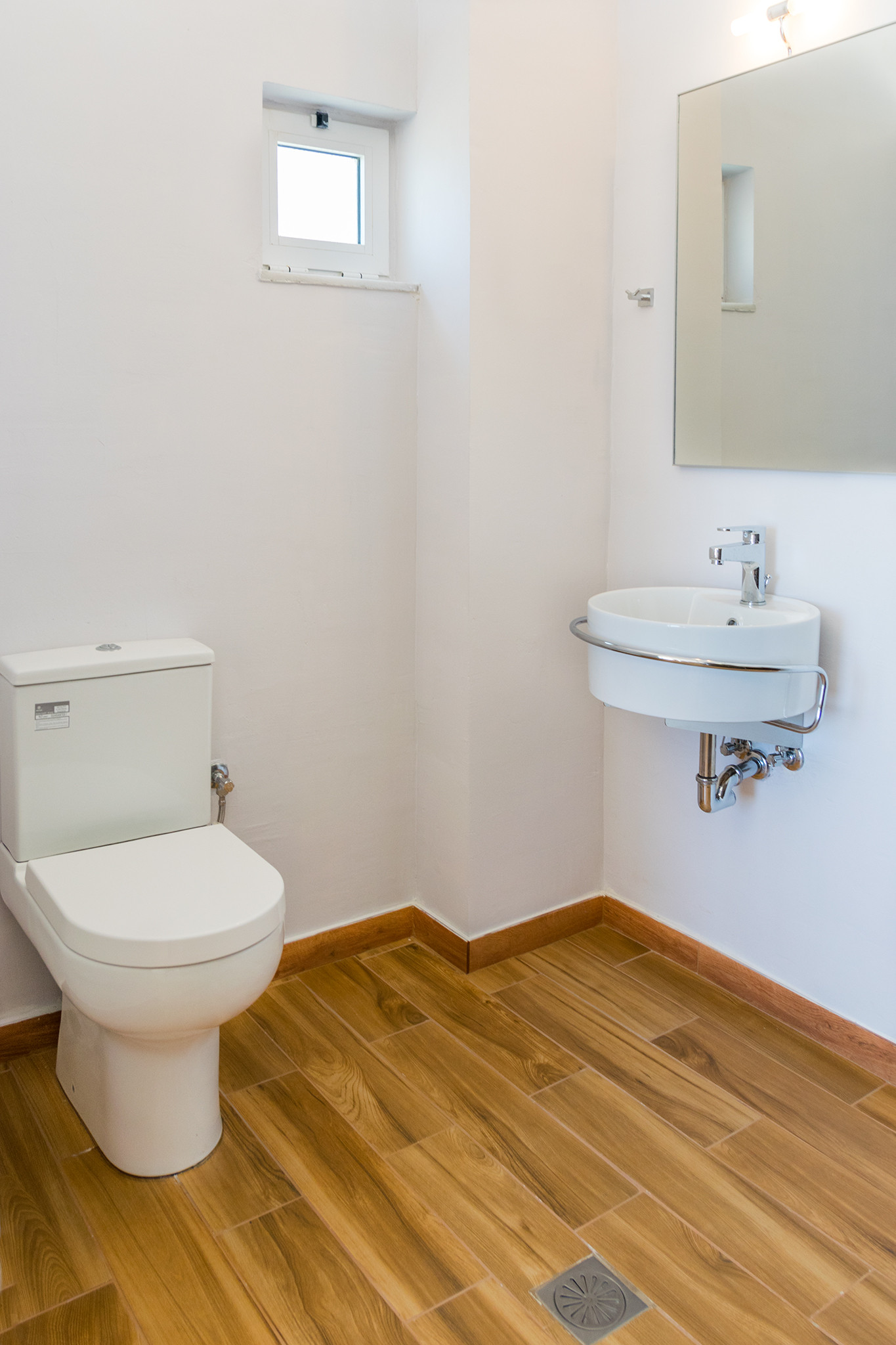 Drei wunderschön eingerichtete Schlafzimmer, eines mit eigenem Dusch-WC und ein Familienbadezimmer mit Dusche/WC und Doppelwaschbecken, vervollständigen die komfortable Grundrissgestaltung der Villa. Das Hauptschlafzimmer verfügt über ein Doppelbett mit Meerblick und direktem Zugang zum Pool und zur Veranda, während das zweite Schlafzimmer zwei Einzelbetten hat und das dritte Schlafzimmer ein Doppelbett besitzt. Alle Schlafzimmer sind mit Klimaanlagen ausgestattet. Der Wohnbereich öffnet sich durch eine Schiebetür zum Pool, und der private Infinity-Pool erstreckt sich über 18 Quadratmeter.