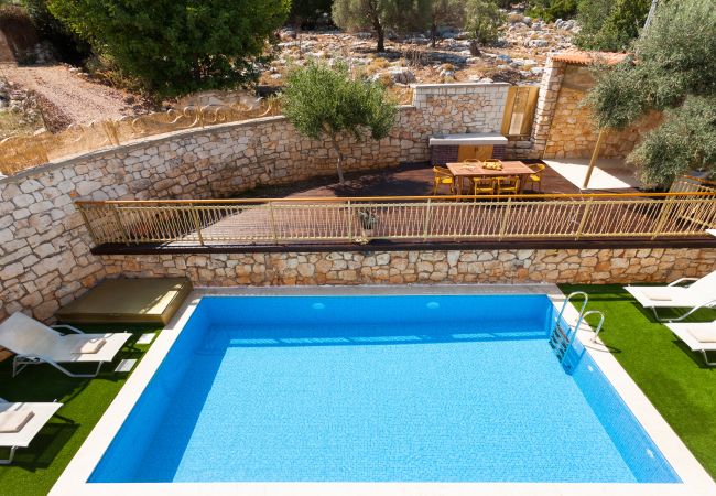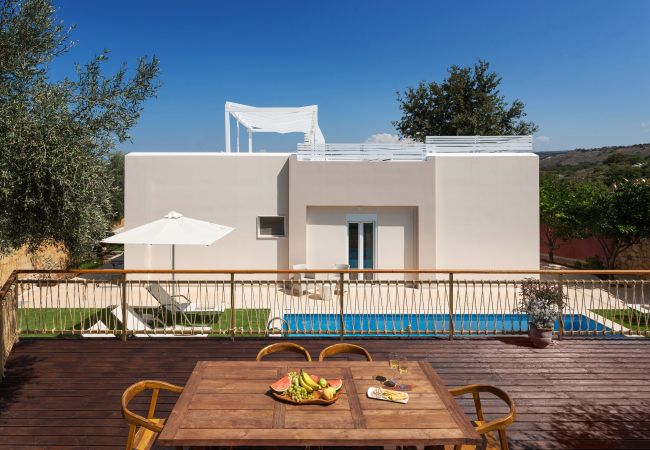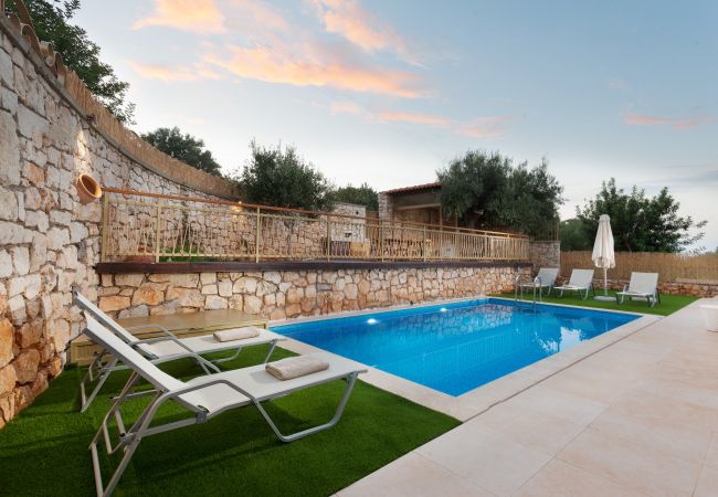 Der Außenbereich der Villa Excecio lädt zum Entspannen und Erholen ein. Genießen Sie die kretische Sonne unter den Sonnenschirmen auf den bequemen Liegen am Pool und Ihre Mahlzeiten im großzügigen Essbereich im Freien. Ein Grill, ein Spülbecken und eine Lounge für Kaffee oder andere Getränke stehen Ihnen ebenfalls zur Verfügung. Das Gelände ist umzäunt, bietet Parkplätze für zwei Autos und WLAN im gesamten Haus und auf dem gesamten Gelände.