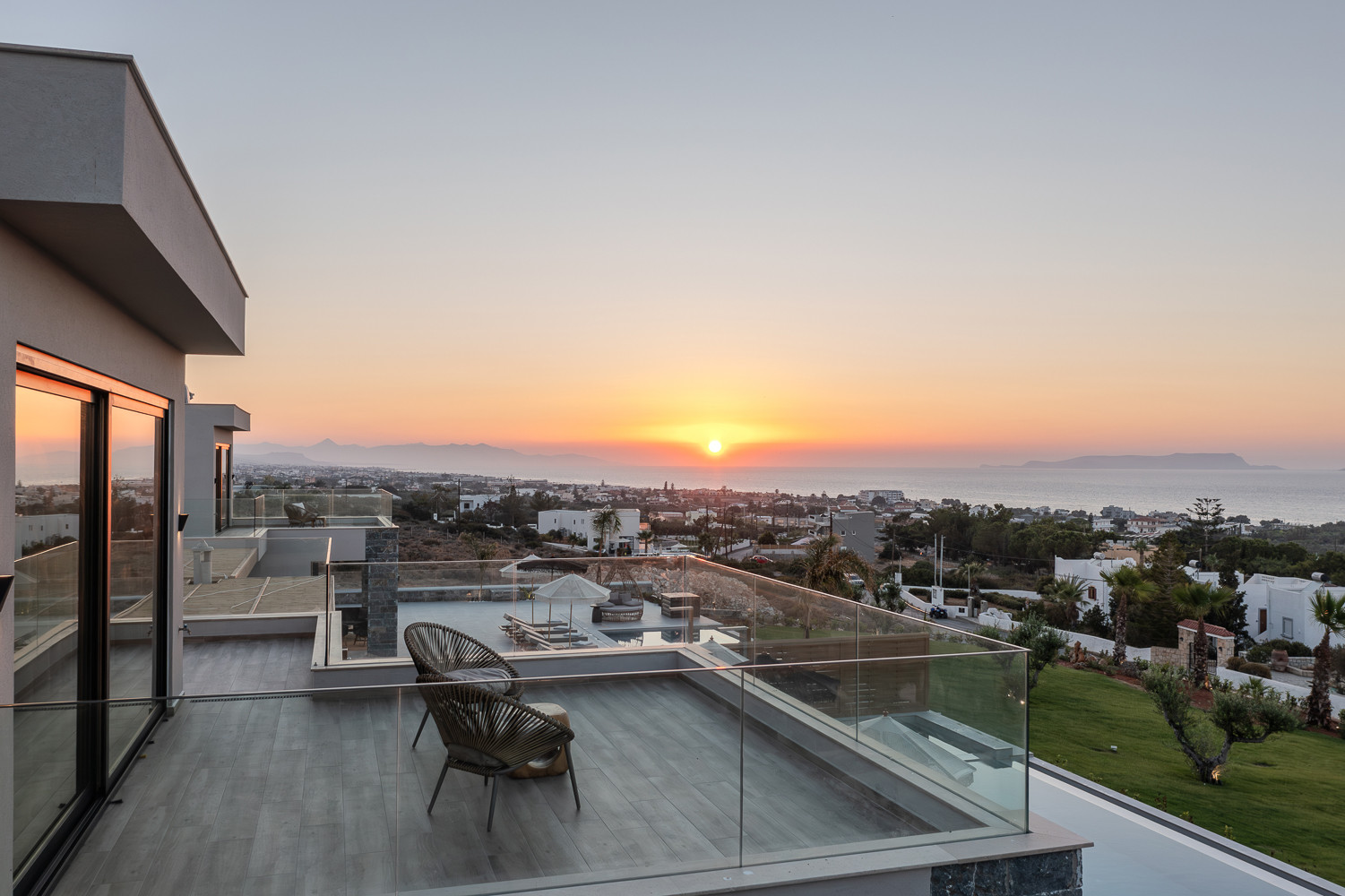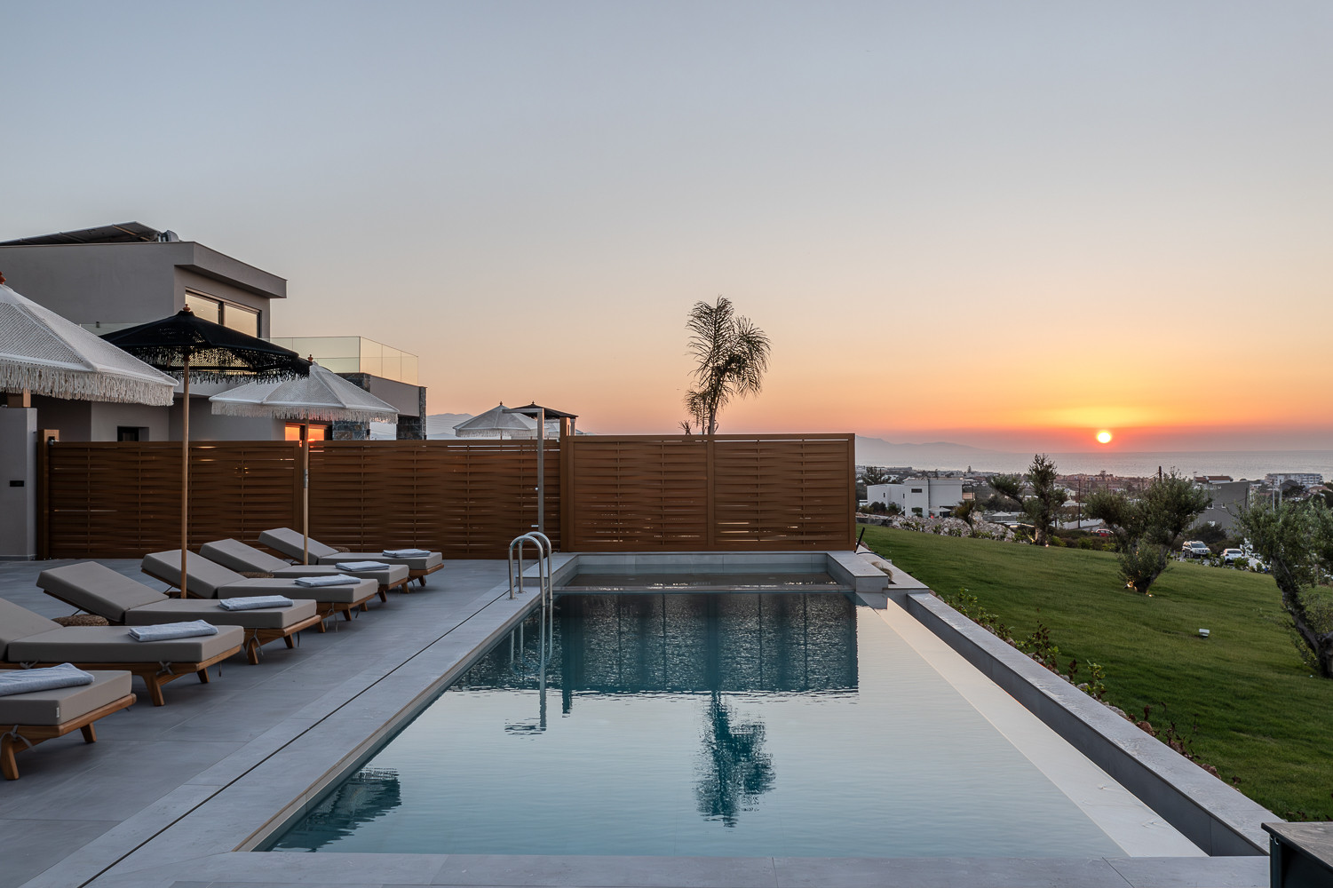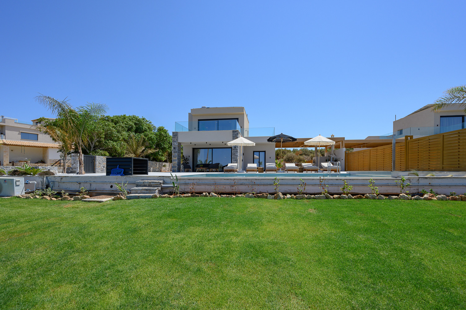 Im Außenbereich beeindruckt die Nysa Luxury Villa 1 weiterhin mit ihrem wunderschön angelegten Garten und einladenden Außenbereichen. Der private Swimmingpool ist das Herzstück und bietet eine erfrischende Auszeit von der kretischen Sonne. Rund um den Pool finden Sie bequeme Gartenmöbel, ideal zum Entspannen und Genießen der warmen mediterranen Atmosphäre. Die Terrasse ist ein perfekter Ort für Mahlzeiten im Freien, während der eingezäunte Garten Privatsphäre und Sicherheit gewährleistet. Ob Sie schwimmen, essen oder einfach die frische Luft genießen, die Außenbereiche der Villa sind darauf ausgelegt, Ihren Aufenthalt zu bereichern.