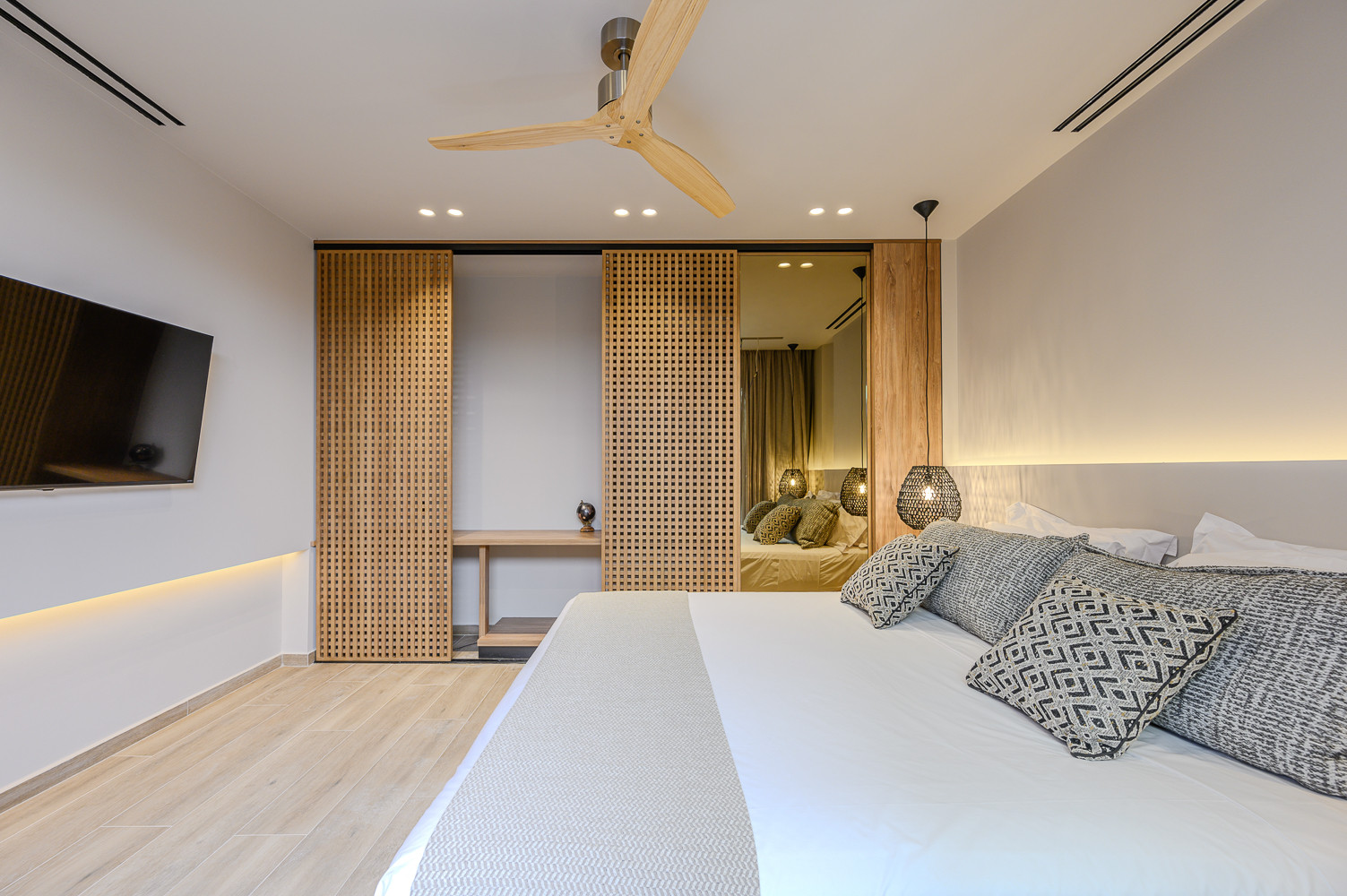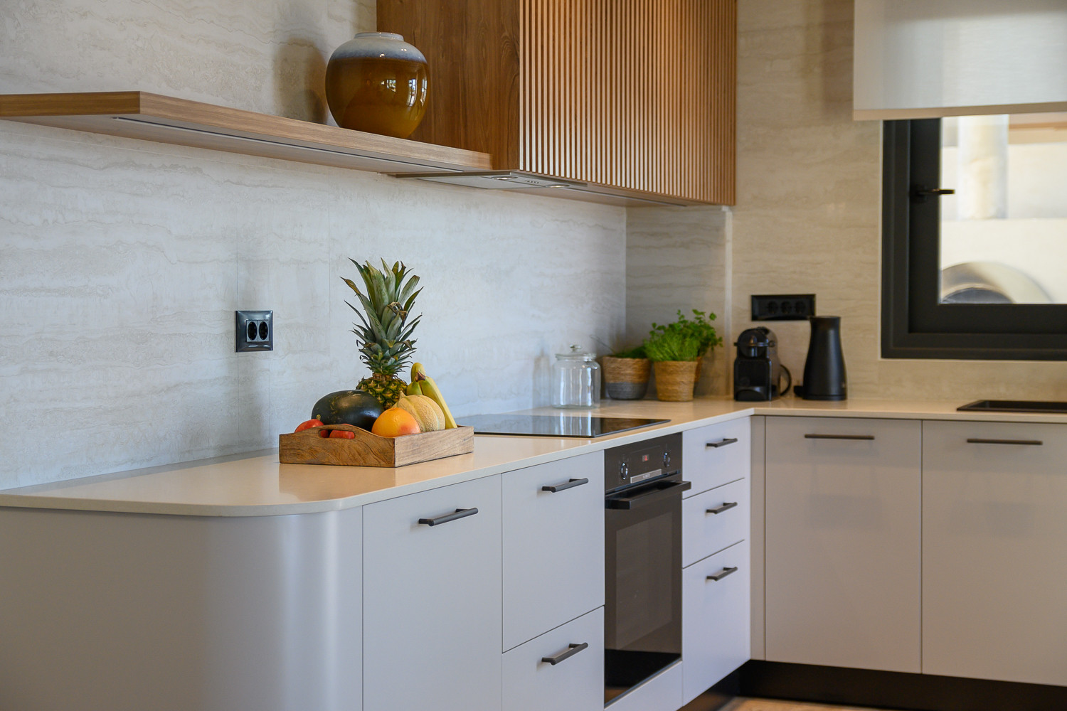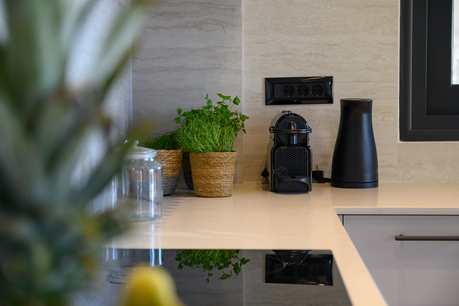 Im Erdgeschoss öffnet sich die Villa zu einem großzügigen und stilvollen Wohnbereich. Das offene Design verbindet nahtlos die moderne, voll ausgestattete Küche mit dem einladenden Wohnzimmer, wo ein 55-Zoll-TV für Ihre Unterhaltung bereitsteht. Auf dieser Etage befindet sich auch zwei Schlafzimmern, jede mit einem Kingsize-Bett , sowie ein Gemeinschaftsbad.