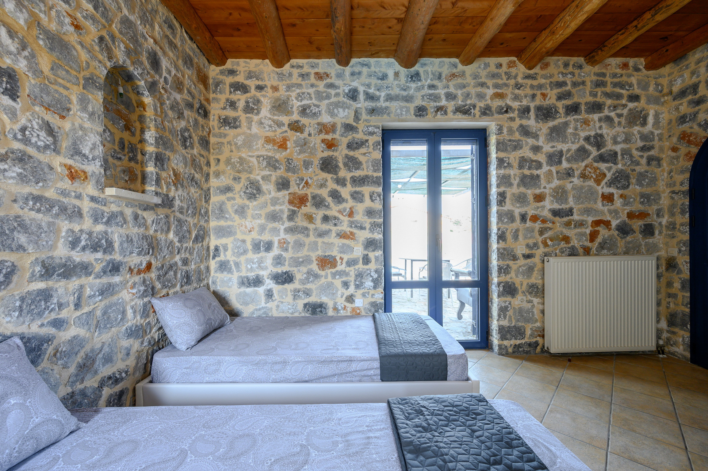 Die Villa Petritis besteht aus einem Hauptgebäude mit einem Erdgeschoss und einem Obergeschoss sowie einer separaten Wohnung mit eigenem Erdgeschoss und Obergeschoss. Das Hauptgebäude verfügt über ein gemütliches Wohnzimmer, eine offene Küche und ein Dusch-WC im Erdgeschoss. Im Obergeschoss finden Sie drei Schlafzimmer, zwei mit Doppelbetten und eines mit zwei Einzelbetten. Jedes Schlafzimmer in dieser Etage verfügt über ein eigenes Badezimmer mit Dusche und WC. Die separate Wohnung umfasst eine Küchenzeile und zwei Einzelbetten im Erdgeschoss, während das Obergeschoss ein großes Doppelbett und ein Dusch-WC bietet.