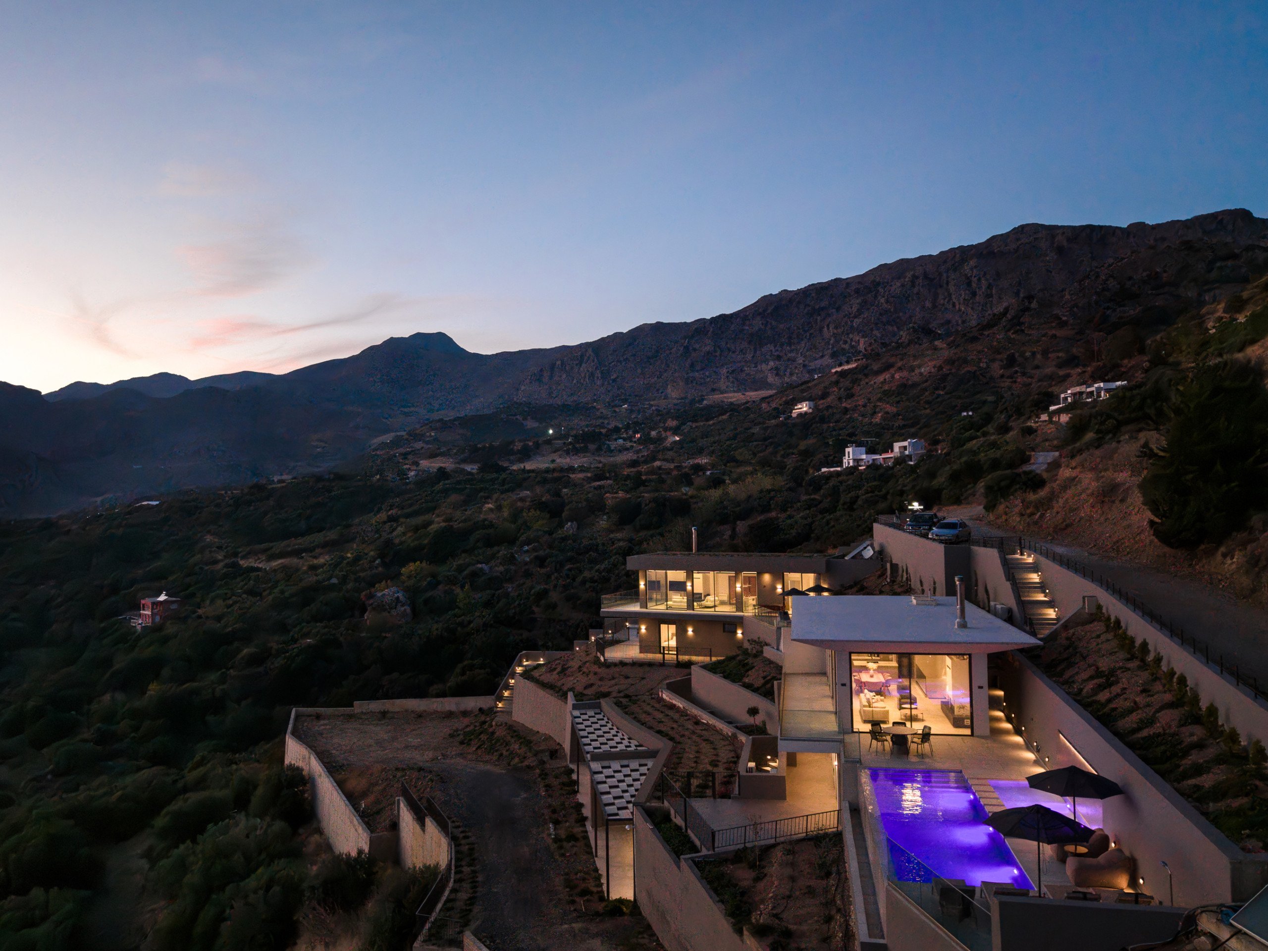 Draußen können Gäste einen privaten 35 m² großen Pool und einen 12 m² Kinderpool genießen, umgeben von Sonnenliegen, Sitzsäcken und Sonnenschirmen. Der angelegte Garten, möblierte Terrassen und der Grillbereich schaffen die perfekte Kulisse zum Speisen und Entspannen, mit spektakulären Ausblicken auf die Südkretische See und die umliegenden Berge. Das gesamte Grundstück ist eingezäunt und gewährleistet Privatsphäre und Sicherheit.