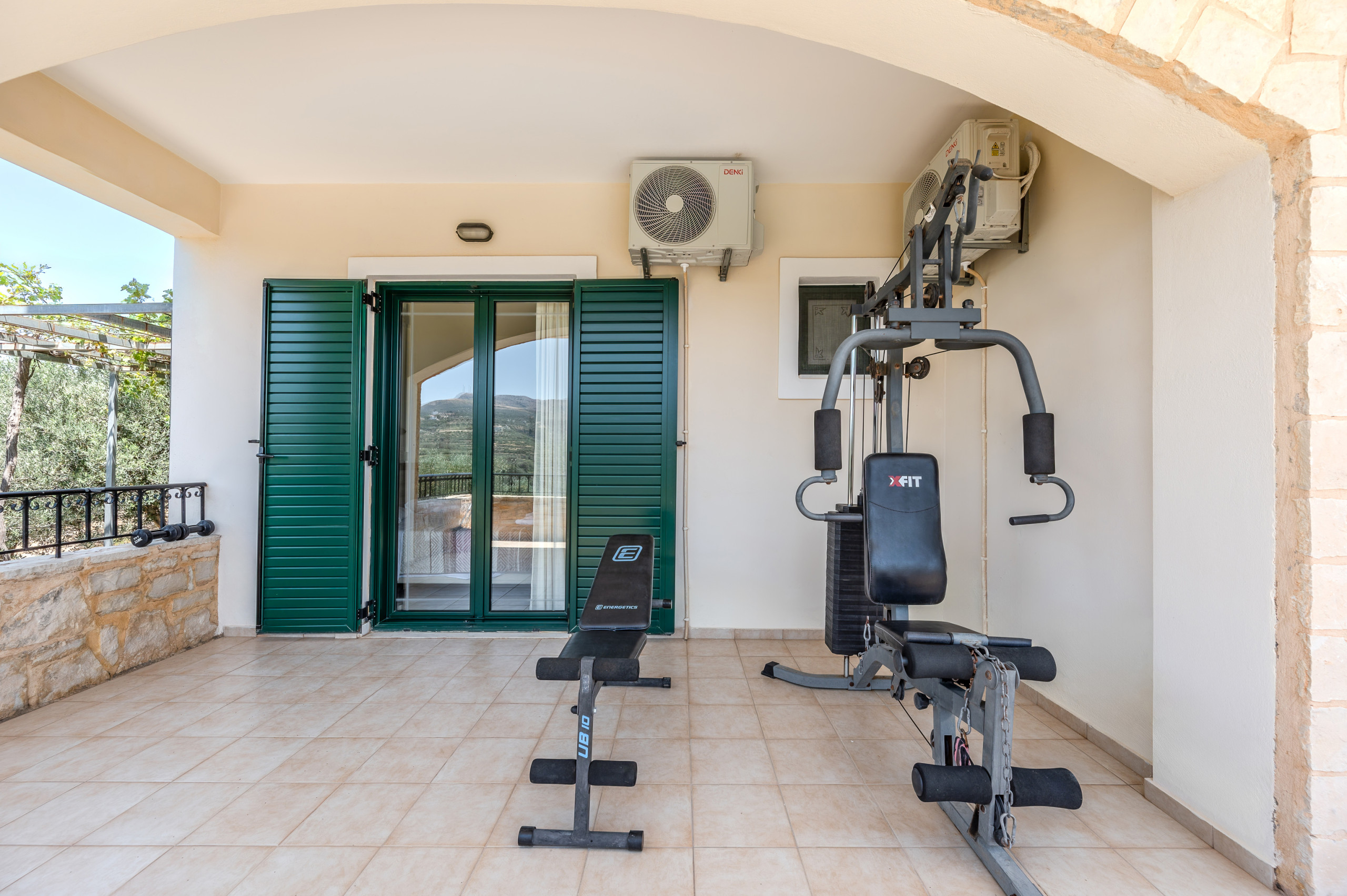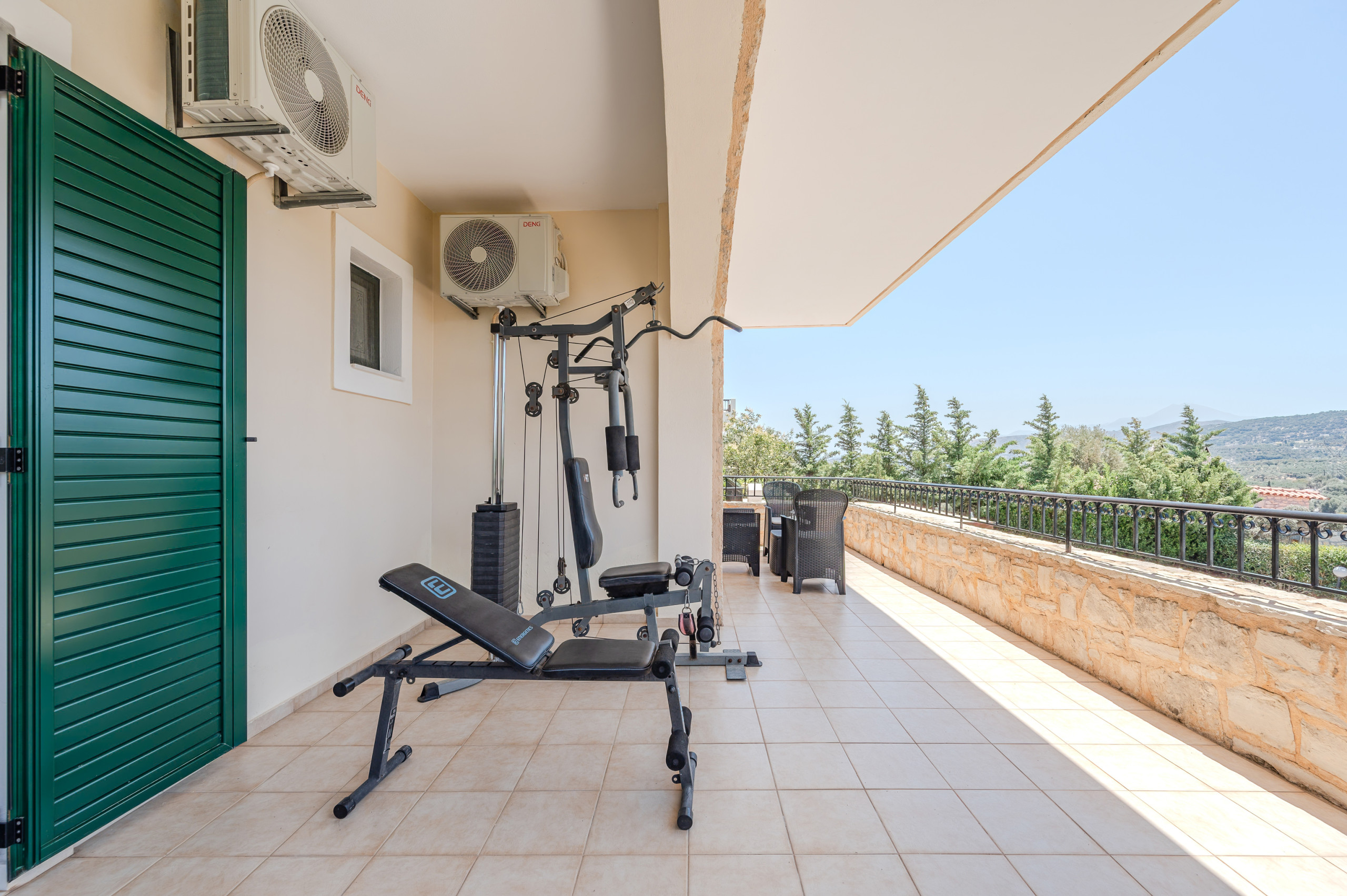 Die Villa ist vollständig klimatisiert und bietet kostenloses WLAN im gesamten Haus, einen sicheren privaten Parkplatz, einen Tresor und sogar eine kleine Fitnessecke auf einem der Balkone.
