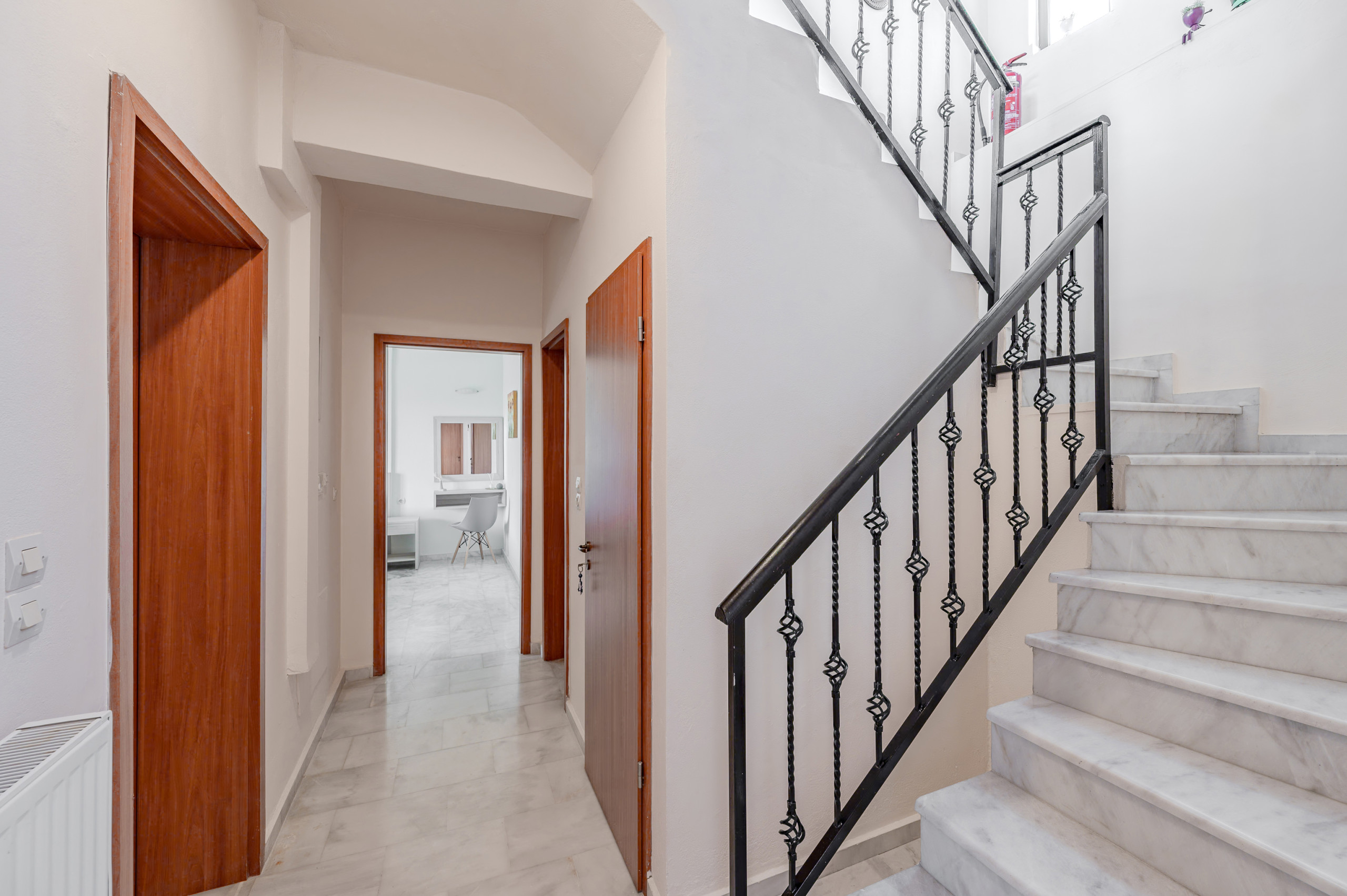 Drei wunderschön eingerichtete Schlafzimmer, jedes mit eigenem Badezimmer, garantieren Komfort und Privatsphäre. Zwei Schlafzimmer haben Doppelbetten in Königsgröße, während das dritte Zwillingsbetten bietet. Alle Räume öffnen sich direkt auf eine geräumige Veranda im Erdgeschoss und verbinden so Innenkomfort mit Outdoor-Leben.