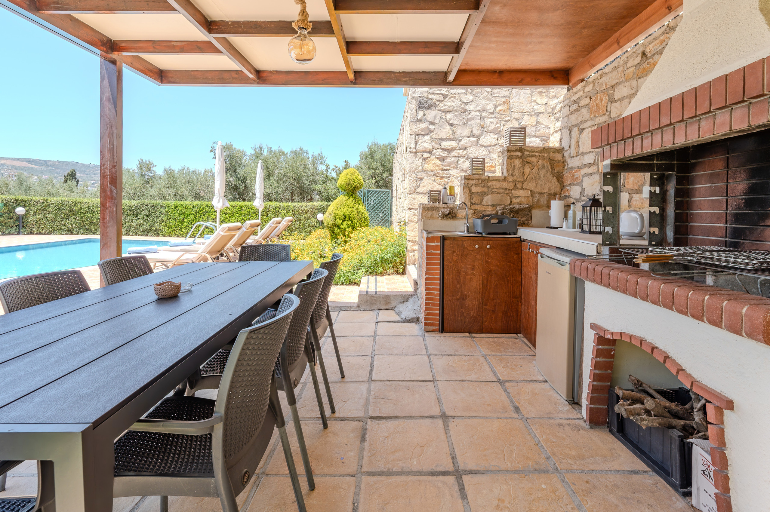 The pool area was beautiful with an outdoor barbecue and kitchen area.