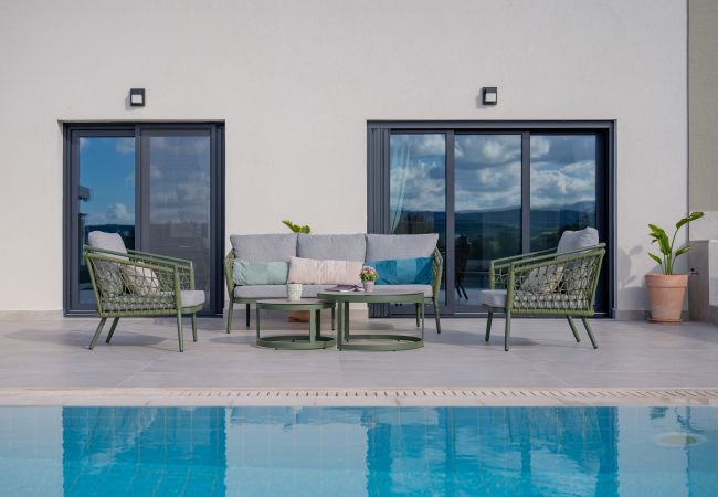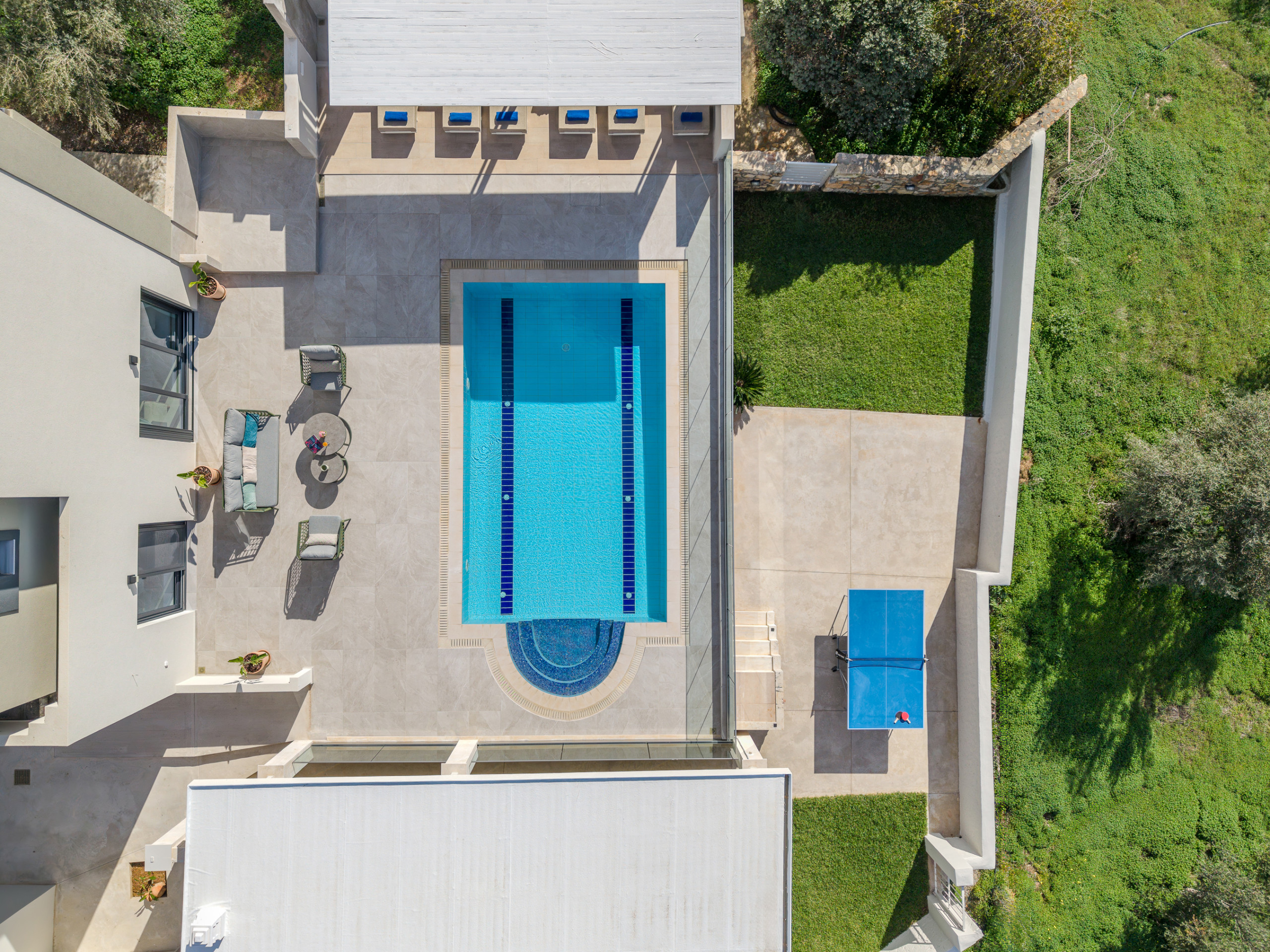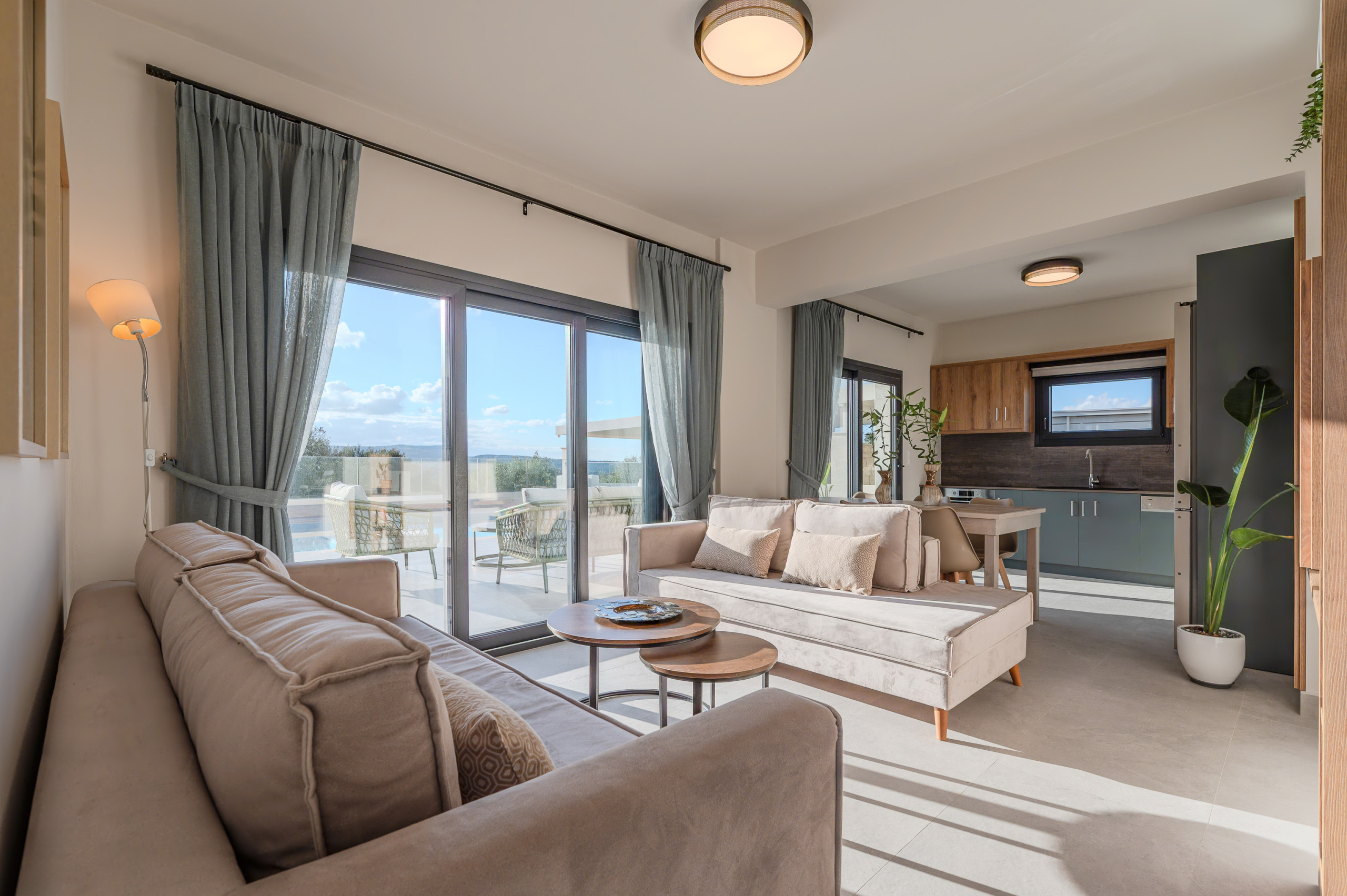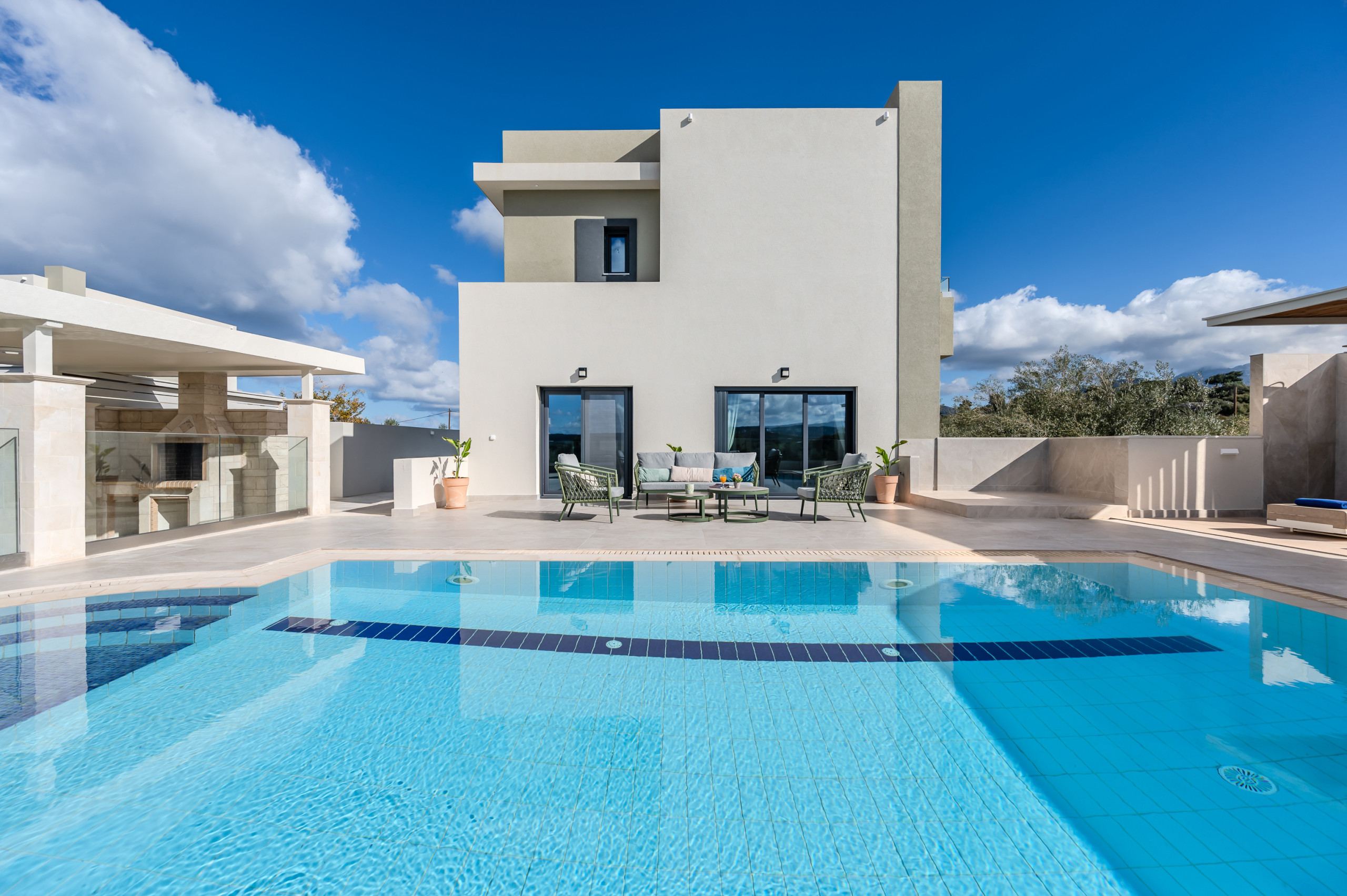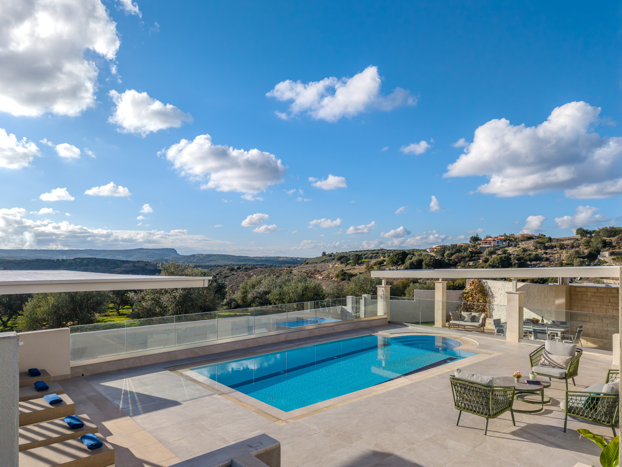 Mit wunderschönen Blicken auf Berge, Garten und Pool ist die Pelagia Villa eine ideale Wahl für Gäste, die einen modernen, luxuriösen und friedlichen kretischen Rückzugsort suchen, der gehobenes Wohnen mit authentischer Umgebung verbindet.