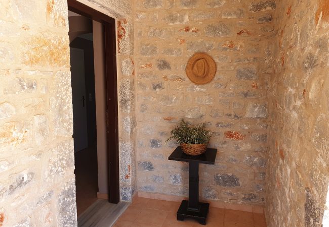 Its prime location offers a wealth of possibilities for excursions and hikes, offering easy and swift access to the picturesque villages and beaches of Mani that stretch along the Laconian coast, the two large bays, the Laconian and Messinian Gulf. The villa is positioned 5 kilometers from the traditional settlement of Areopolis, known for its cobbled streets, towering stone structures, elegant mansions, numerous taverns, and supermarkets. Additionally, it is 10 kilometers from the splendid seaside settlement of Limeni, the port of Areopolis, and Nea Oitylos Beach.