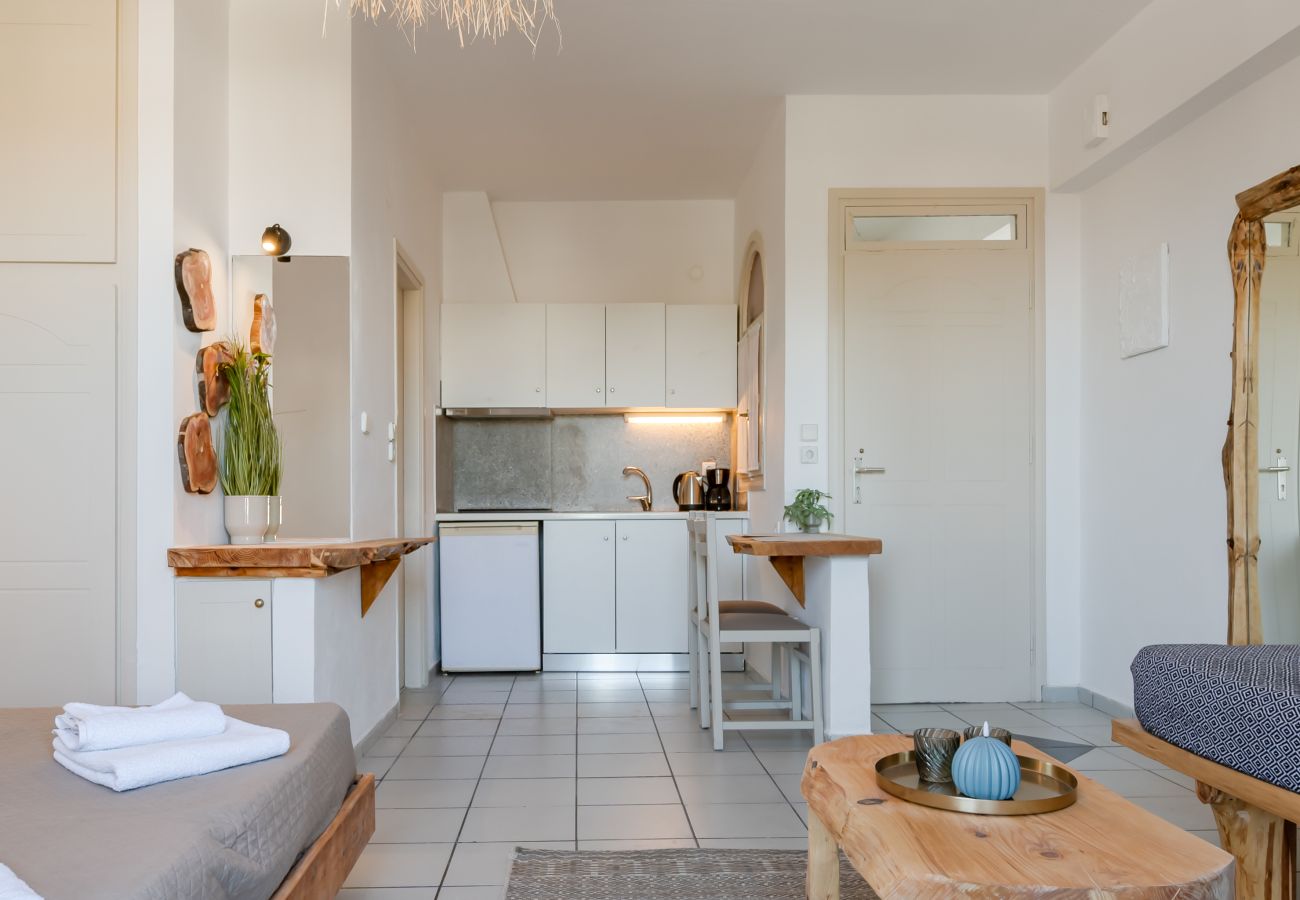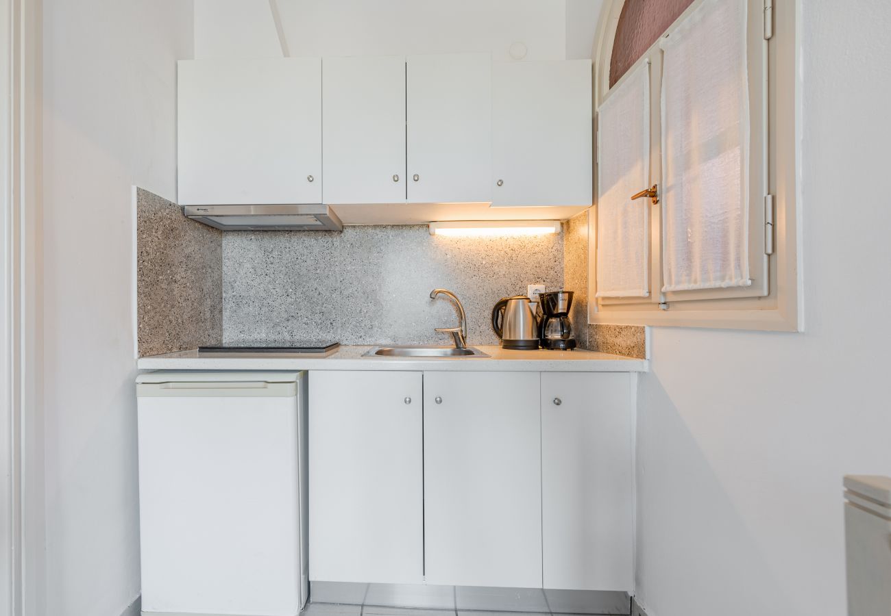 Step outside onto your private balcony and soak in the Mediterranean sun or enjoy a quiet evening breeze. The studio ensures a cozy stay with essential amenities such as TV, Wi-Fi, a hairdryer, and an iron at your disposal.