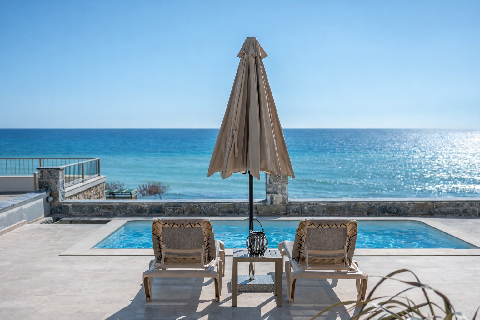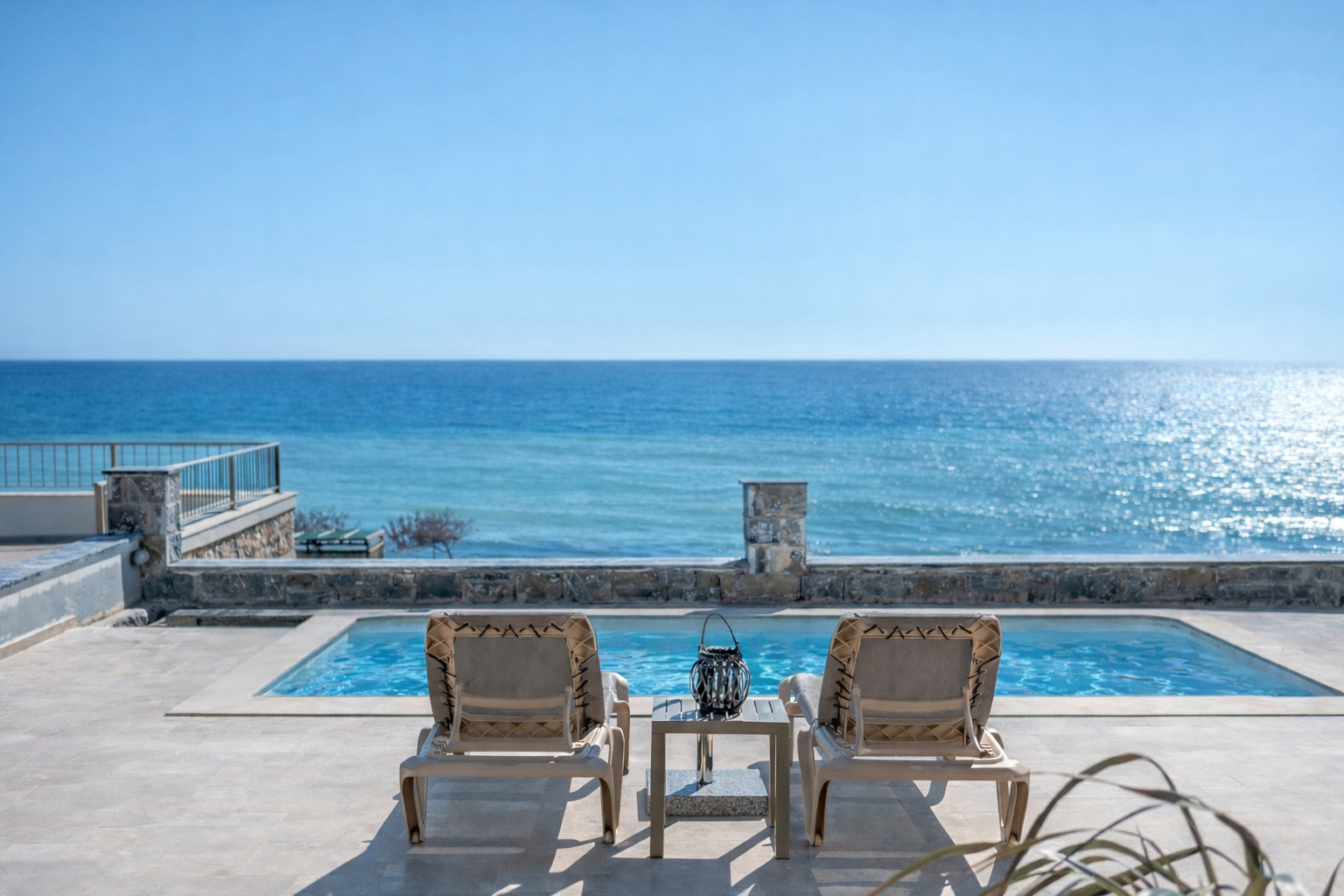 The villa is ideally positioned between two well-known beaches of South Heraklion, Listis Beach and Kaboula Beach, offering a truly unique beachfront experience.
