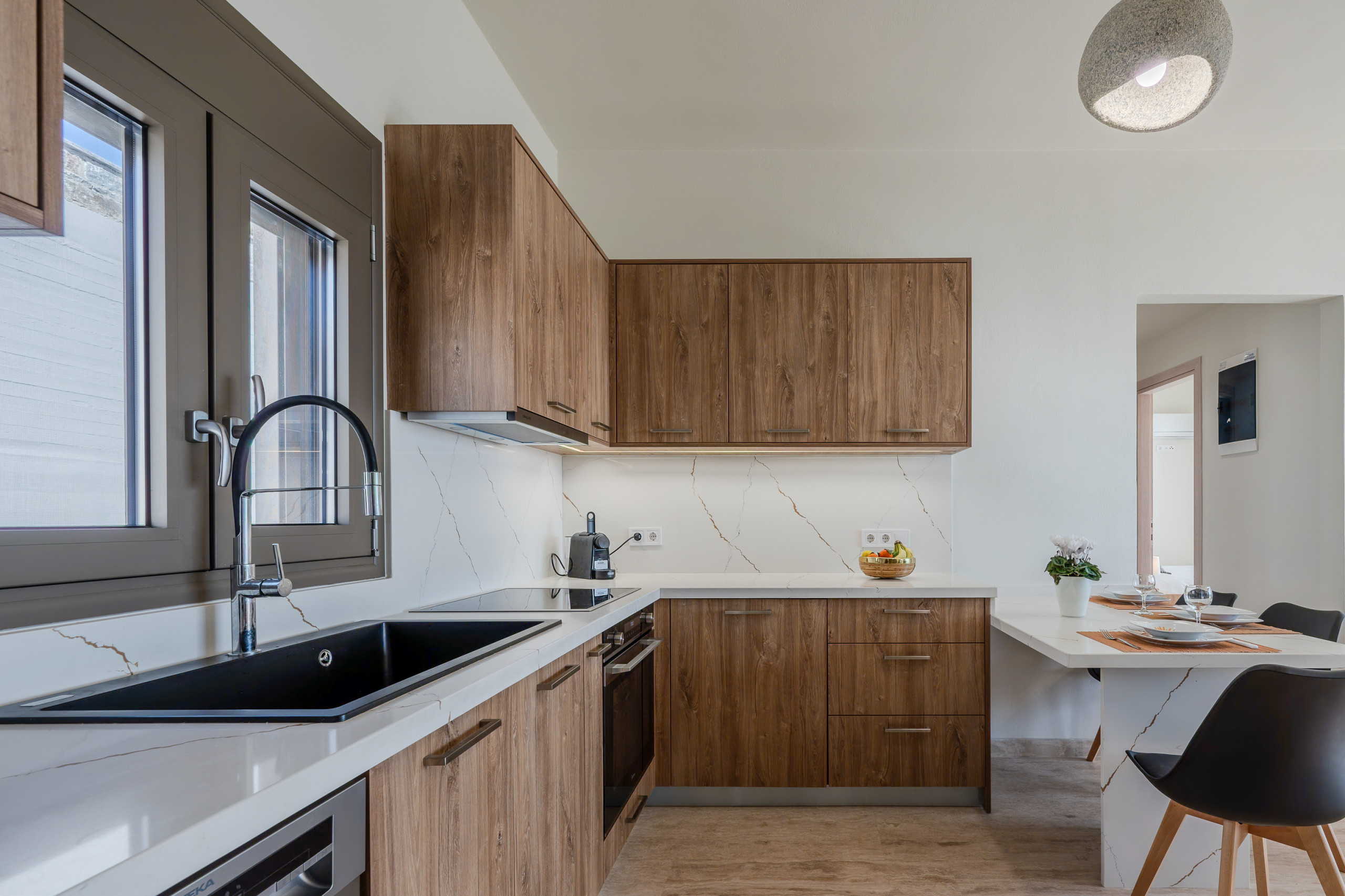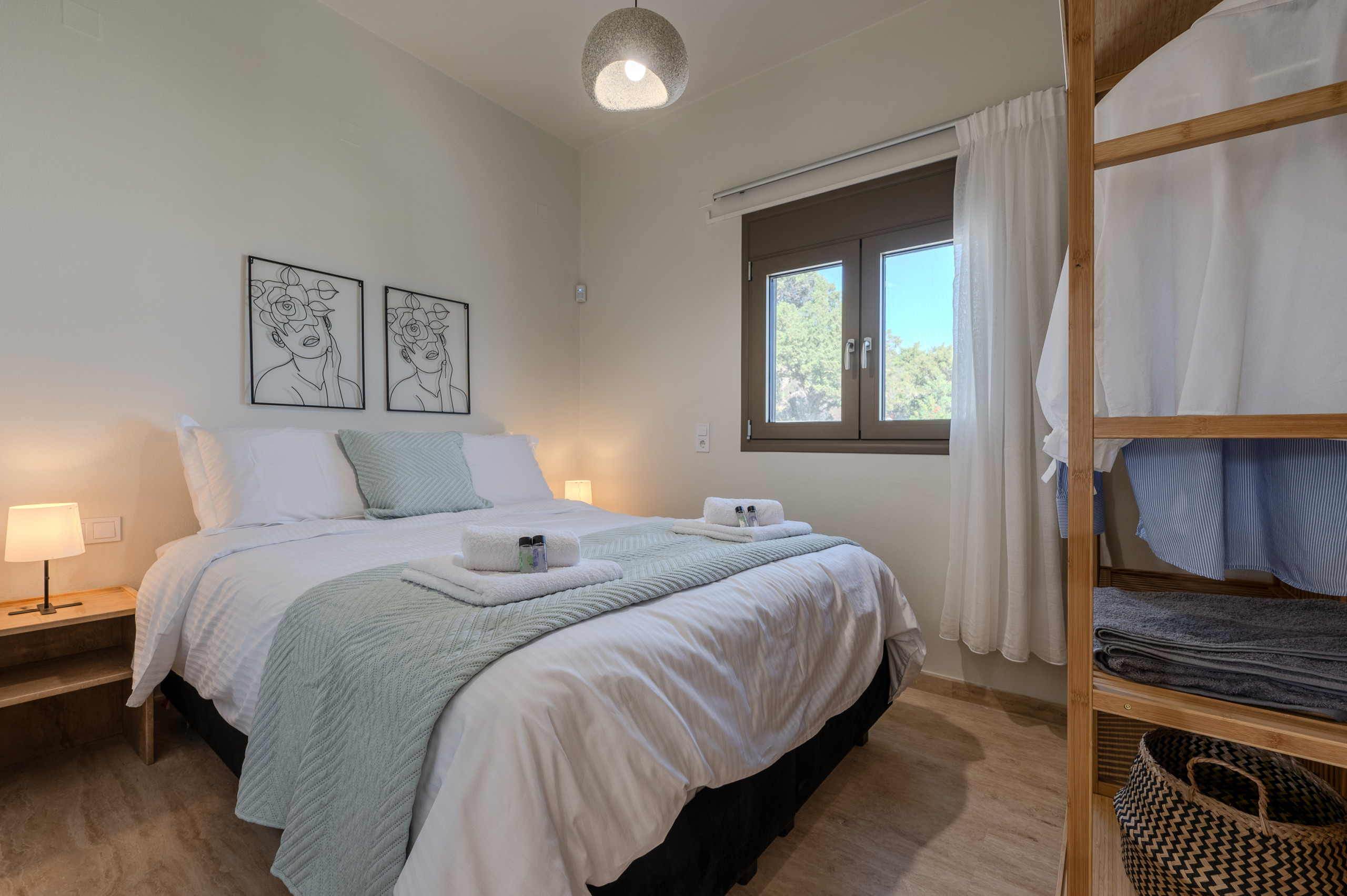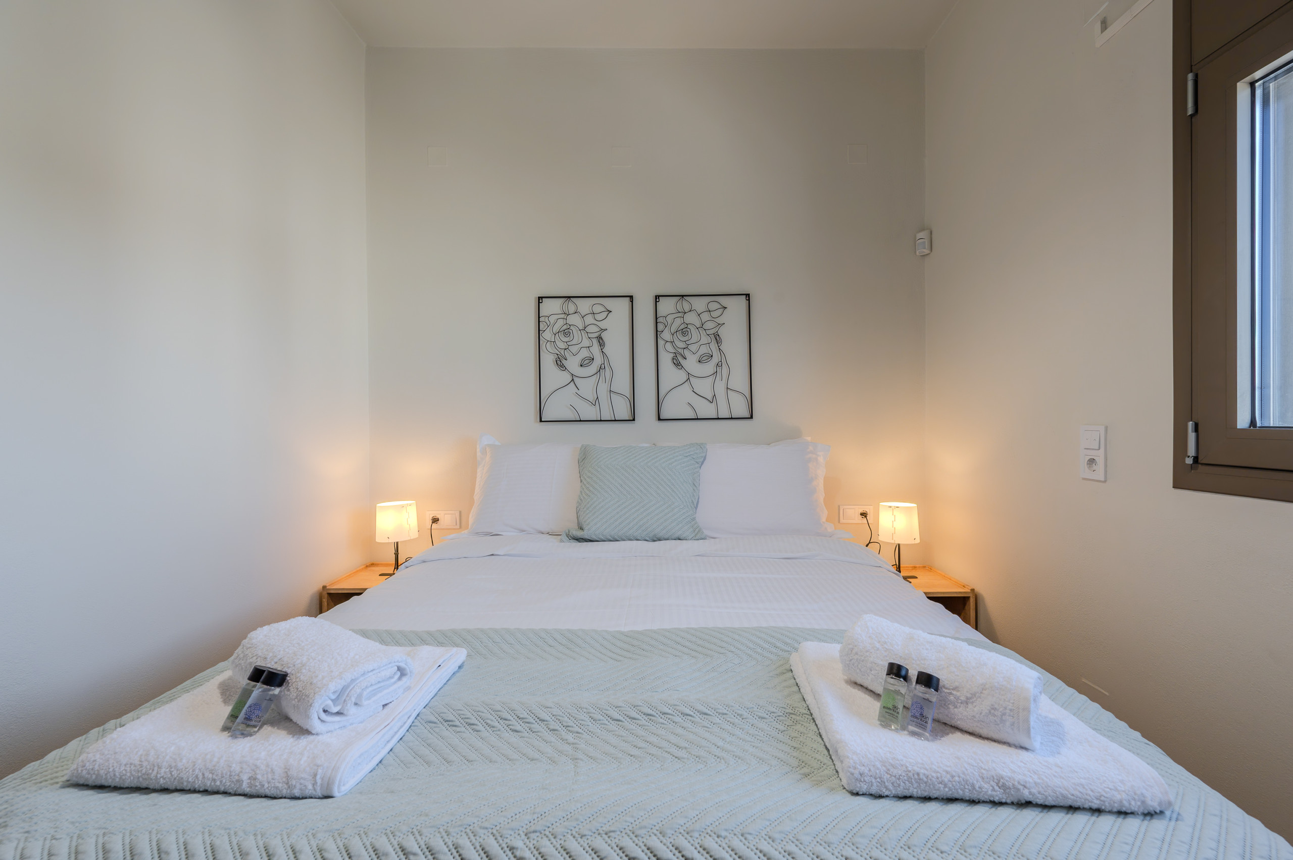 The accommodation features a bright and comfortable open-plan layout, including a fully equipped kitchen, dining area, and a stylish living space with a sofa, armchairs, and Smart TV.There are two beautifully appointed bedrooms, each with a queen-size bed, sharing a modern shower and WC.The entire property is fully air-conditioned and offers high-speed satellite Wi-Fi throughout.