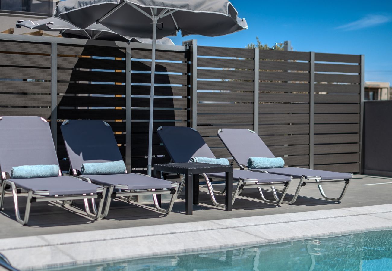 Step outside to your private oasis: a 28 sqm swimming pool (7m x 4m, 1.5m deep) surrounded by sun loungers, beanbags, umbrellas, and a refreshing outdoor shower. Enjoy al fresco dining in the outdoor BBQ area, perfect for long, leisurely meals under the Cretan sun.