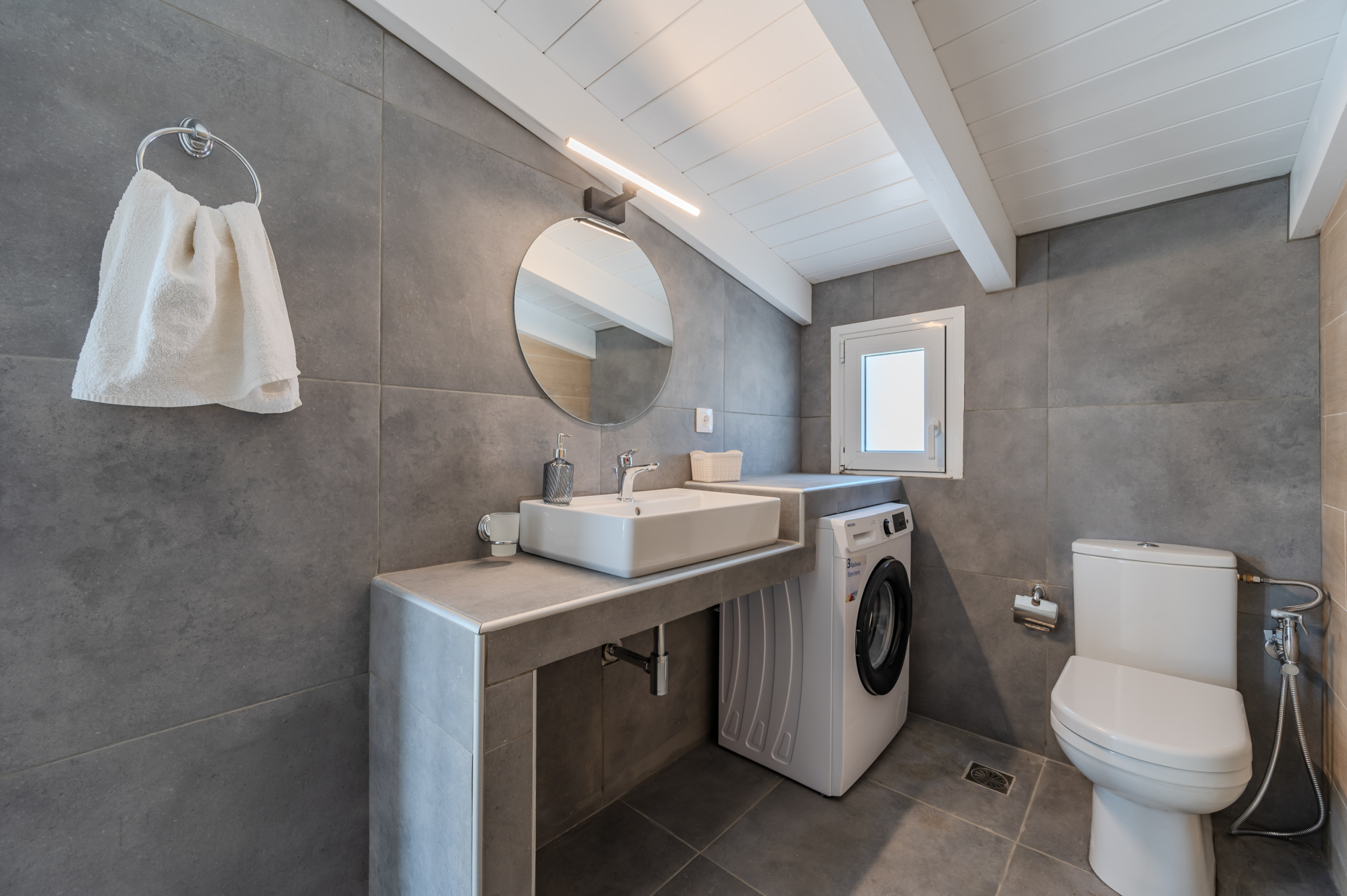 Mythos Villa is thoughtfully equipped with all the amenities needed for a comfortable and enjoyable stay. Relax in the beautiful garden or on the spacious terrace, perfect for outdoor dining and unwinding. The ground floor of this villa features an open-plan living area with a fully equipped kitchen, a dining table, a comfortable corner sofa, and a smart TV. On this level, there is one bedroom with 2 single beds that can be conveniently converted into a Queen-size bed (1.80 x 2.00 meters) and comes with an en-suite bathroom.