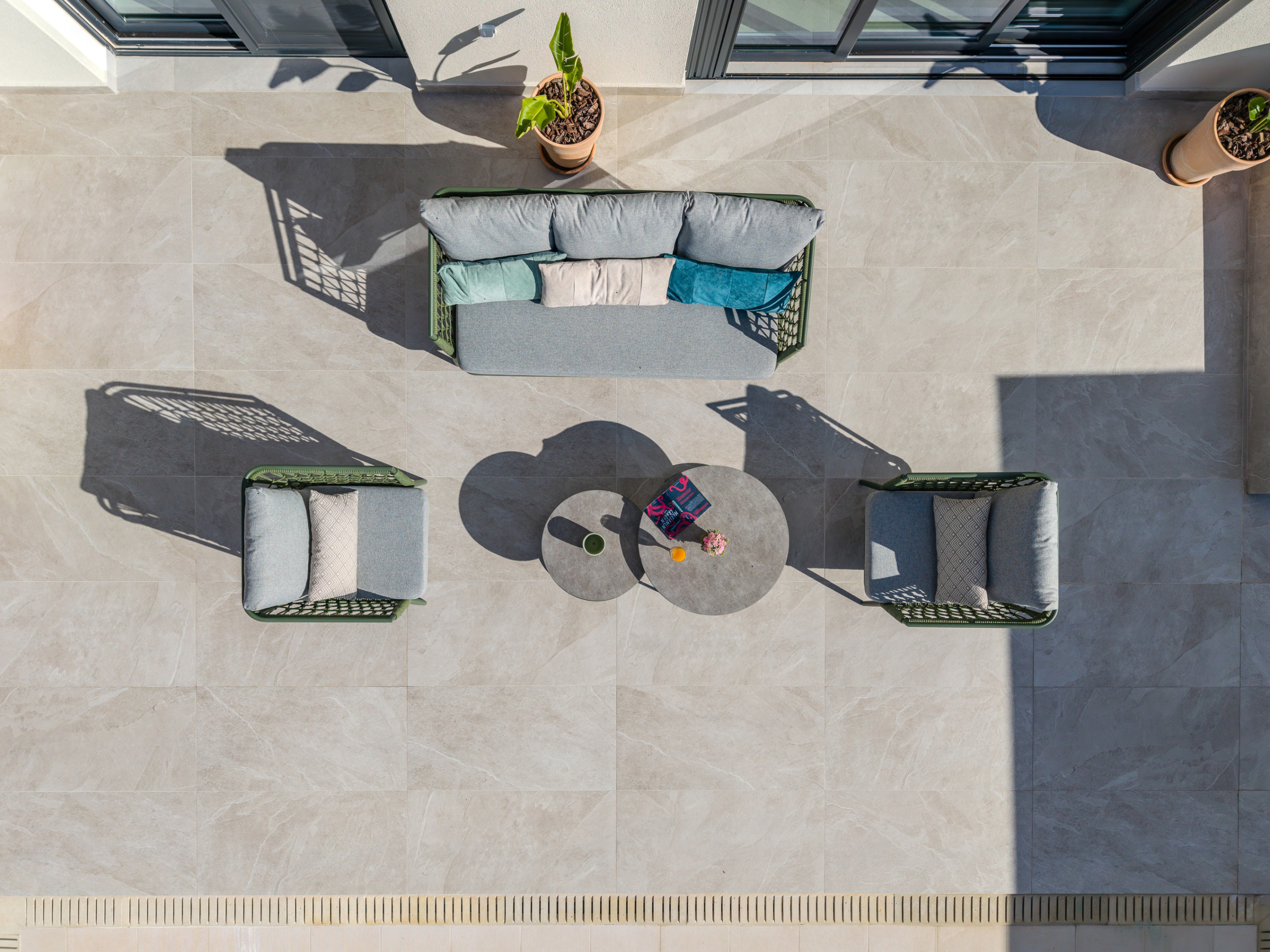 Outdoors, the villa boasts a spacious private area with a pergola-covered dining space, ideal for al fresco meals. The 30 sqm private swimming pool is surrounded by a landscaped garden within a fully fenced 515 sqm plot, offering privacy and safety. Sun loungers, garden furniture, and a BBQ area complete the outdoor experience.