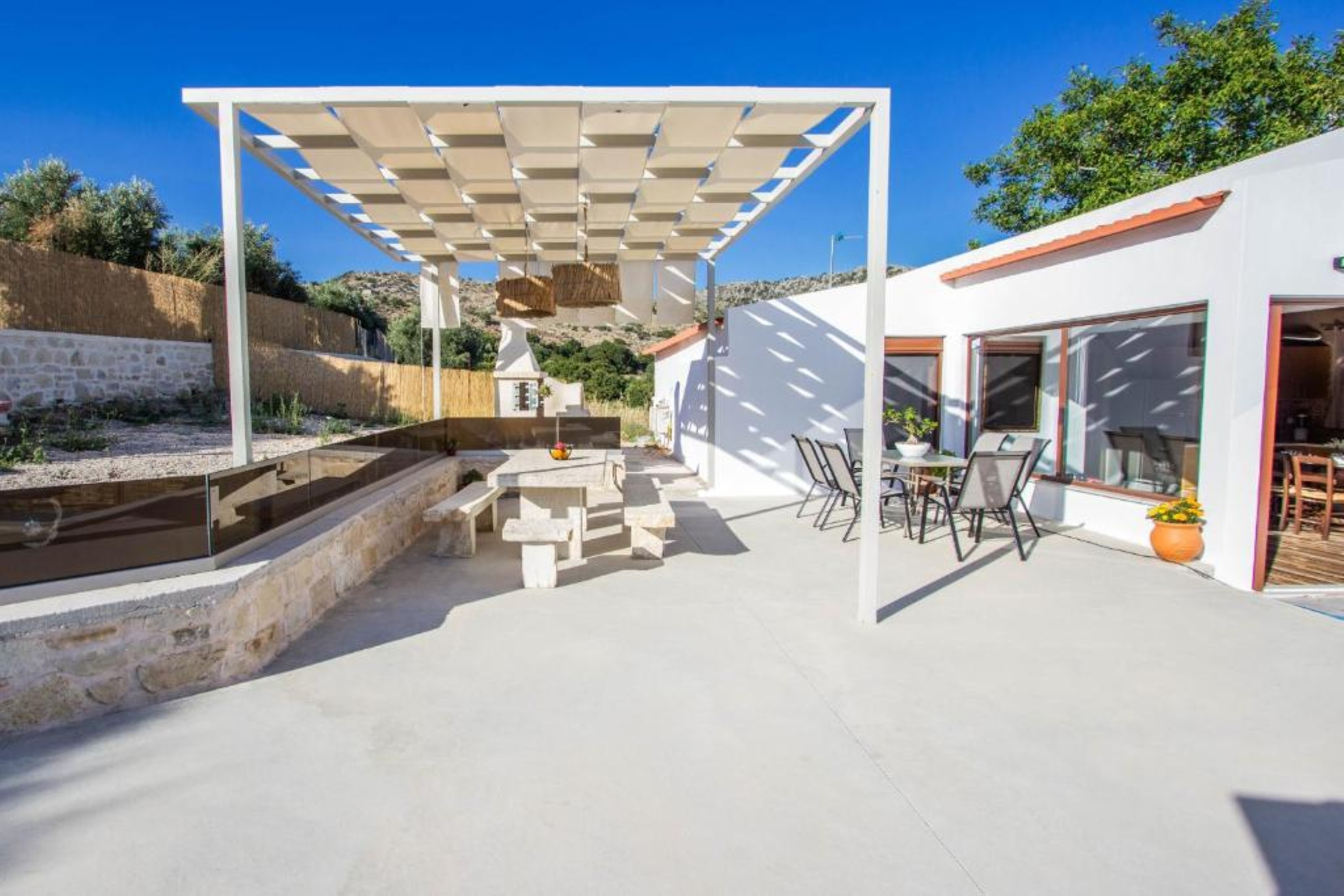 Altura Villa is located approximately 20 km from Rethymno town, 15 km from Plakias Beach, and within short driving distance of traditional tavernas, supermarkets, and popular attractions such as Argyroupoli Waterfalls. The peaceful surroundings, combined with mountain, garden, pool, and partial sea views, make the villa an ideal choice for guests seeking both relaxation and exploration.