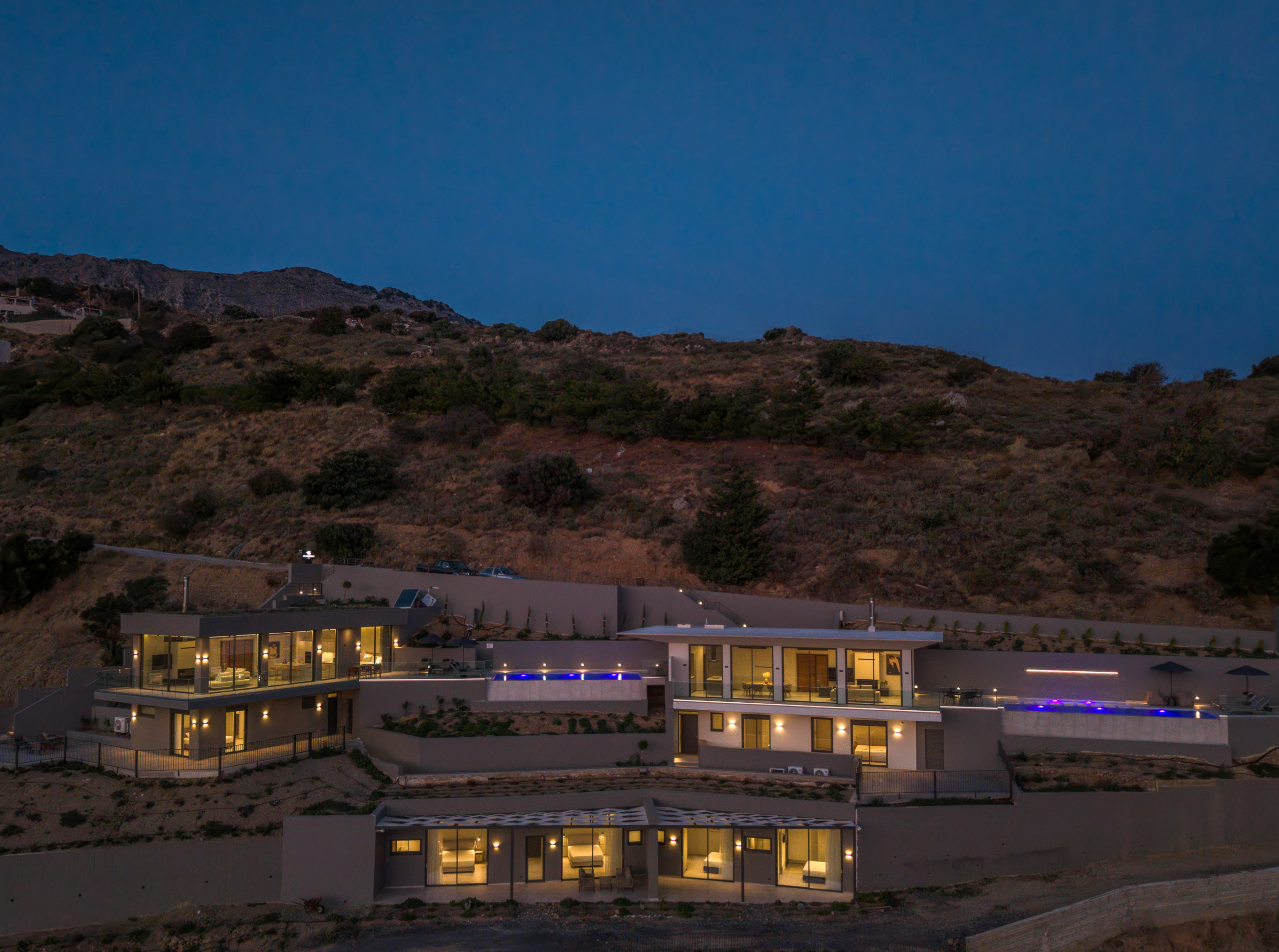 Dione Villa is a brand-new luxury residence located in the peaceful village of Sellia, just a few minutes from Plakias and the famous beaches of South Crete. With impressive architecture, panoramic sea views and a private pool with a children’s section, the villa offers total privacy, comfort and relaxation for up to eight guests.